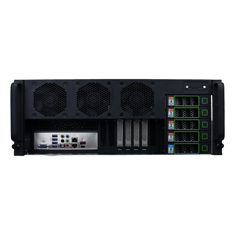 廣州天翱機(jī)架式GPU服務(wù)器,型號(hào)為TA-S04B,高度為傳統(tǒng)4U機(jī)架式服務(wù)器,深度為780mm??蓴U(kuò)展10路雙寬4090,可廣泛應(yīng)用于人工智能/深度學(xué)習(xí),高性能計(jì)算(HPC),云游戲;分子動(dòng)力學(xué)模擬。平臺(tái)采用最新GEN5.0,MCIOx8接口,最大保證GPU跟CPU之間通訊損耗降到最低,發(fā)揮顯卡的性能。供電支持5個(gè)CRPS,工作模式3+2,最大負(fù)載支持8000瓦特,結(jié)合XT90(航空頭)端子引線方式,大大滿足GPU的高功耗供電需求。