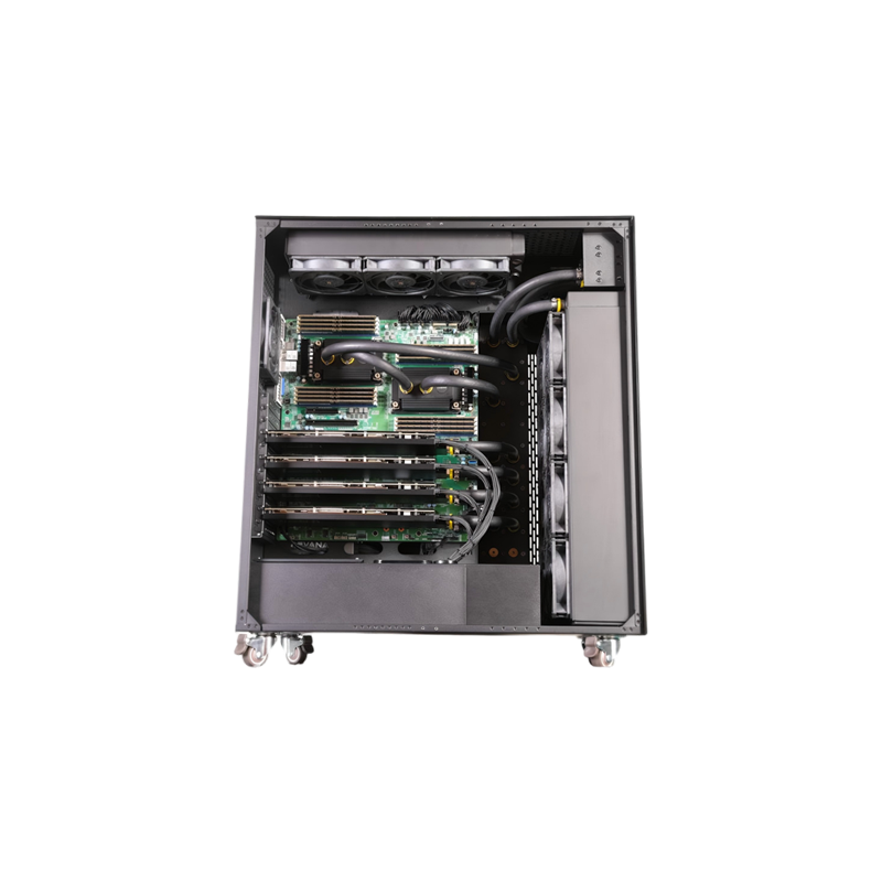 廣州天翱分體式液冷服務(wù)器,搭載雙路第3代英特爾至強(qiáng)可擴(kuò)展處理器TDP270W;8 通道 DDR4內(nèi)存最高2TB。配備 4 路 GPU 并行計(jì)算,適配 DeepSeek等大模型推理,搭配豐富高速存儲與 PCIe 4.0 擴(kuò)展,高效支撐高性能計(jì)算、人工智能/深度學(xué)習(xí)、HPC、云游戲與分子動(dòng)力學(xué)模擬等場景。