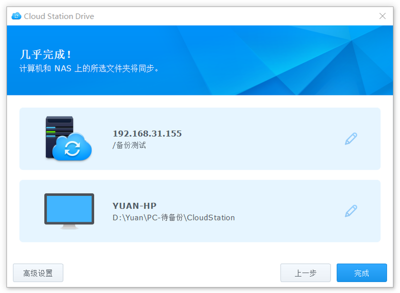 通過電腦端Cloud Station Drive和NAS端的Cloud Station Server實時備份文件