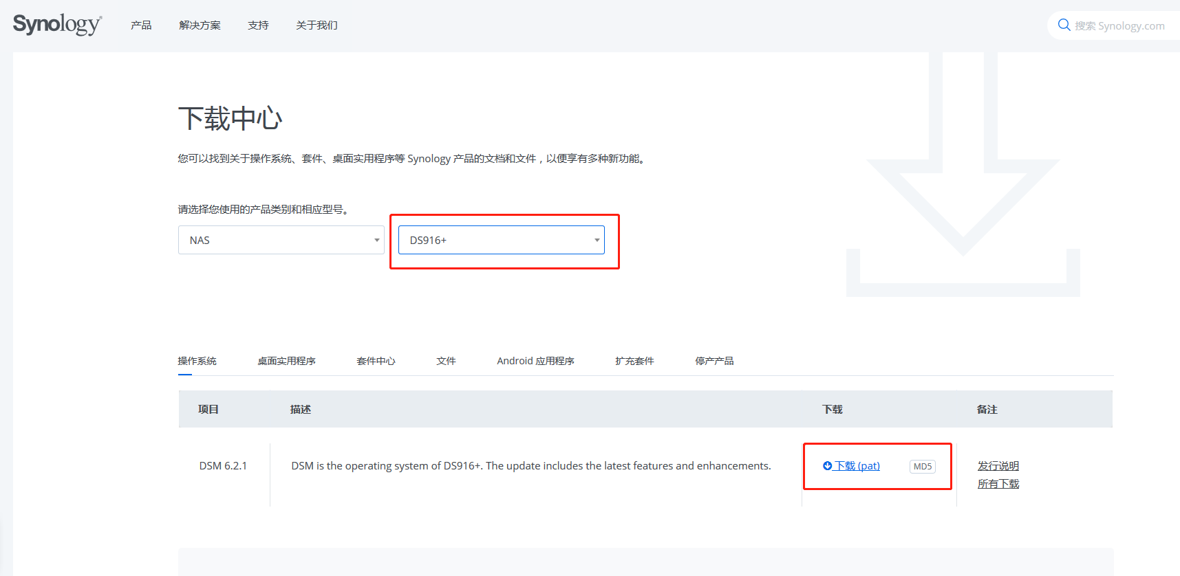 首先我們的群暉nas都是沒有系統(tǒng)的,先要去synology官網(wǎng)下載DSM固件跟安裝工具。
