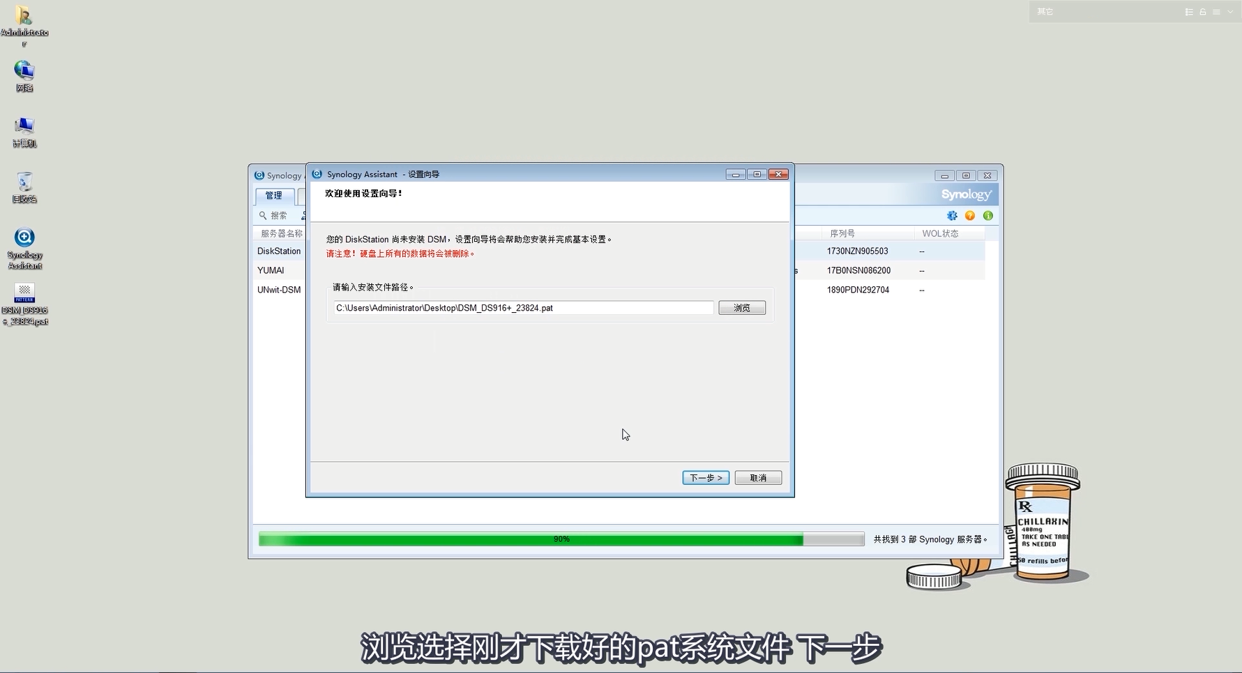 選擇你的機器的型號,然后下載 pat 文件和安裝助手Synology Assistant