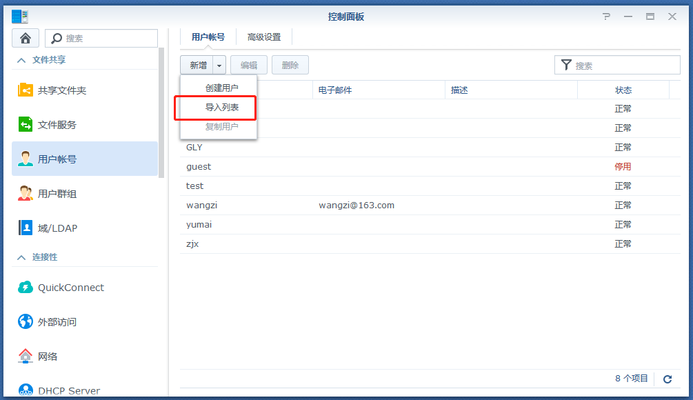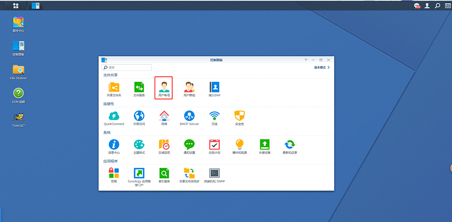 首先我們在群暉 nas 的 DSM 系統(tǒng)中進(jìn)入控制面板,選擇用戶賬戶